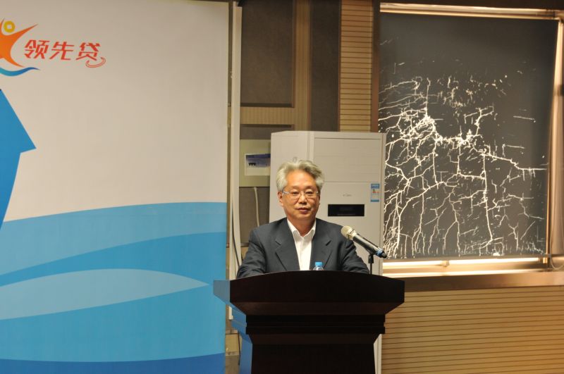 领路人有限公司创始人陈济先生用PPT展示了领先贷的平台介绍,平台愿景,大事记,战略规划以及青春贷的申请程序,借贷成本,未来展望等内容,并表示了对领路人与山东财经大学双赢局面的期待。
