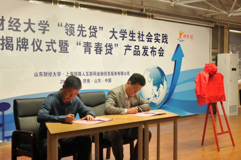 2015年10月23日下午,由山东财经大学和上海领路人互联网金融信息服务有限公司联合举办的山东财经大学“领先贷”大学生社会实践基地揭牌仪式暨“青春贷”产品发布会在山东财经大学大学生创业基地举行,山东财经大学副校长胡文波、上海领路人有限公司代表、山东财经大学上海校友会代表出席了此次活动。本次活动由我校校友工作办公室主任耿金波主持,各学院学生踊跃参加。