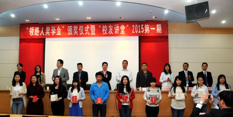学生处处长王剑宣读了获奖学生名单,工商管理学院党委书记杨哲作为教师代表讲话,工商管理学院2012旅游管理学生伊玲慧作为获2014年度领路人奖学金代表发言。