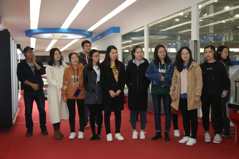 下午两点,师生14人抵达山东小鸭集团工业园,小鸭集团副总经理王梓楠及人力资源部经理张孝东已经等候在大厅,对师生们的到来表示热烈欢迎。师生随行参观了小鸭工业园内冷链产业、精工机械产业的生产车间和产品展厅,以期对集团智能制造、人才培养以及技术研发等相关内容作全面而细致地了解。从生产车间出来,金光灿灿的专利背景墙引得同学们纷纷驻足观看,大家无不感慨于核心技术之于企业发展的重要性。
