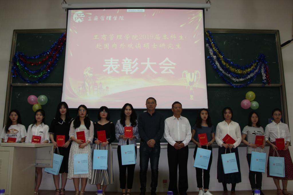 5月15日下午2时30分,山东财经大学工商管理学院于燕山校区逸夫楼302教室,召开2019届本科生赴国内外攻读硕士研究生表彰大会。工商管理学院党委书记李旭刚、院长刘军、党委副书记张红燕、党委副书记彭艳红、各位辅导员老师及2019届国内外升学毕业生出席此次会议。本次会议由就业办负责人刘薇老师主持。
