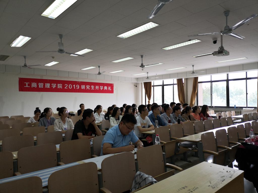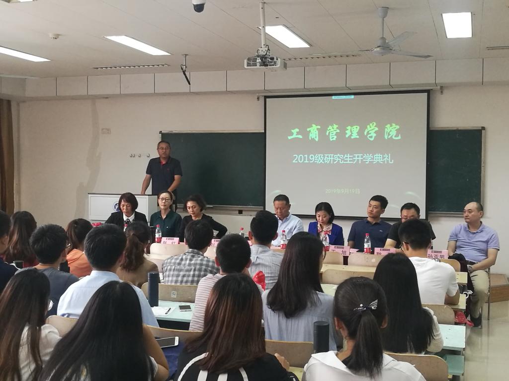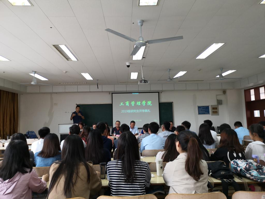 9月19日下午,工商管理学院2019级研究生开学典礼在逸夫楼Y219教室举行。工商管理学院党委书记李旭刚、院长刘军、党委副书记彭艳红、副院长赵红及学院各系教师代表出席典礼,典礼由党委副书记彭艳红主持,2019级全体博士硕士研究生参加。