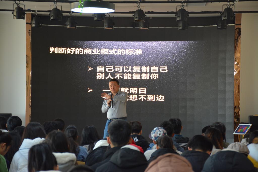 在讲座中,窦大海指出当今企业间的竞争是商业模式之间的竞争,而一个好的商业模式能为企业带来持久的竞争力,并运用四川航空的“双循环”盈利模式来详细地分析一个好的商业模式的重要性。同时,窦大海也向同学们分析了”挑战杯“、“创青春“、”互联网+”比赛的区别,以及分享了一些备赛小技巧,并强调在备赛过程中也应不忘初心、正确看待专家和指导老师的建议,在比赛的不同阶段,了解评委的不同评判体系,对症下药。