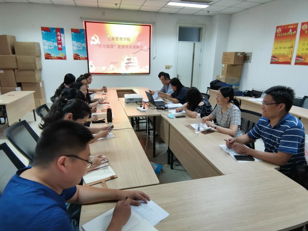 为庆祝中国共产党成立99周年,7月2日,工商管理学院在逸夫楼207会议室召开了学习强国优秀学员表彰会。学院党委副书记彭艳红主持召开会议,党委专职组织员、各党支部书记参加本次会议。