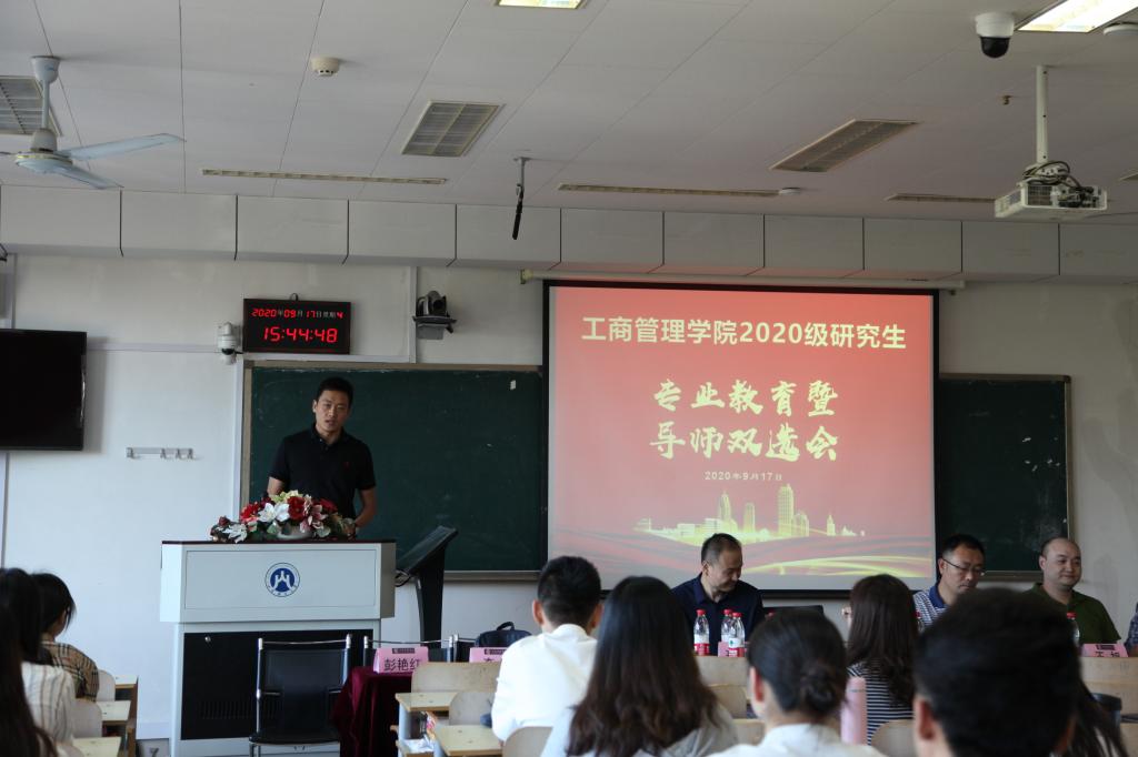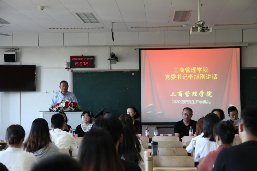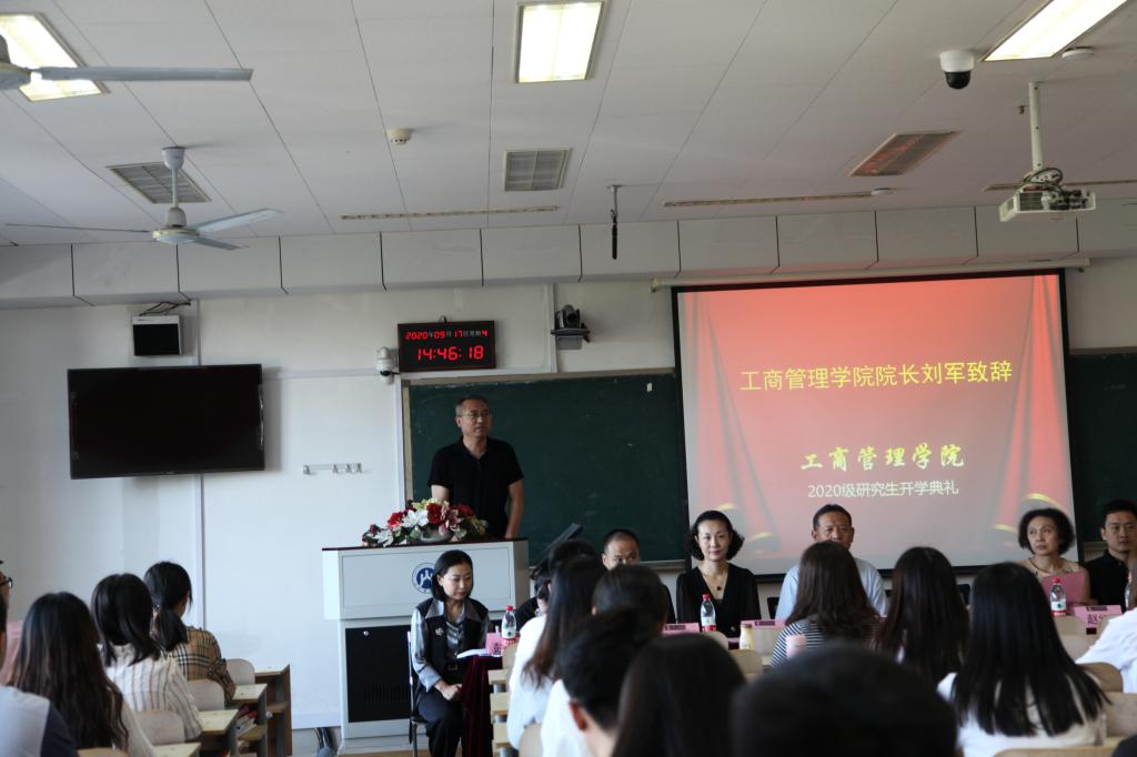 9月17日下午,工商管理学院2020级研究生开学典礼在逸夫楼Y218教室隆重举行。工商管理学院党委书记李旭刚、院长刘军、党委副书记彭艳红、副院长赵红、邢楠楠、王旭及各系教师代表出席典礼。典礼由彭艳红主持,2020级全体研究生参加。