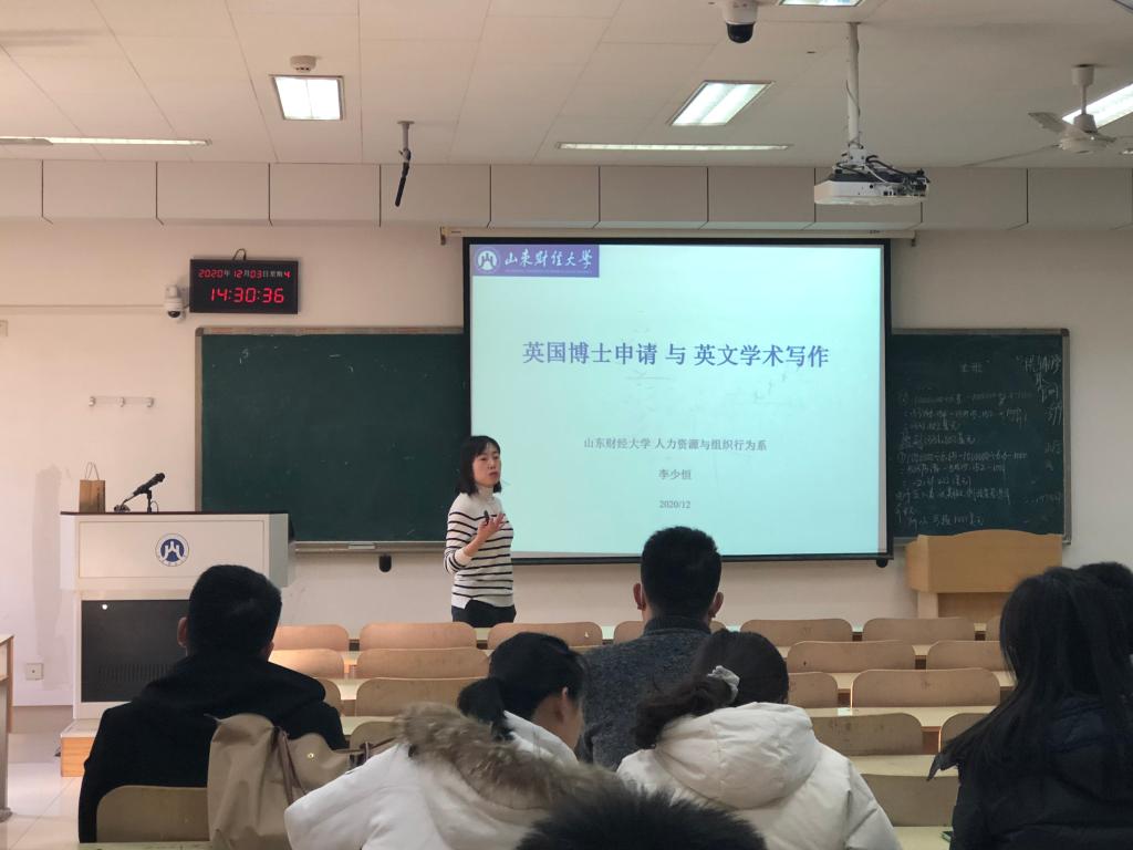12月3日下午,工商管理学院研究生青年博士论坛在Y201开讲。本次论坛邀请李少恒老师做 “英国博士申请与英文学术写作”主题讲座。工商管理学院全体研究生参加。