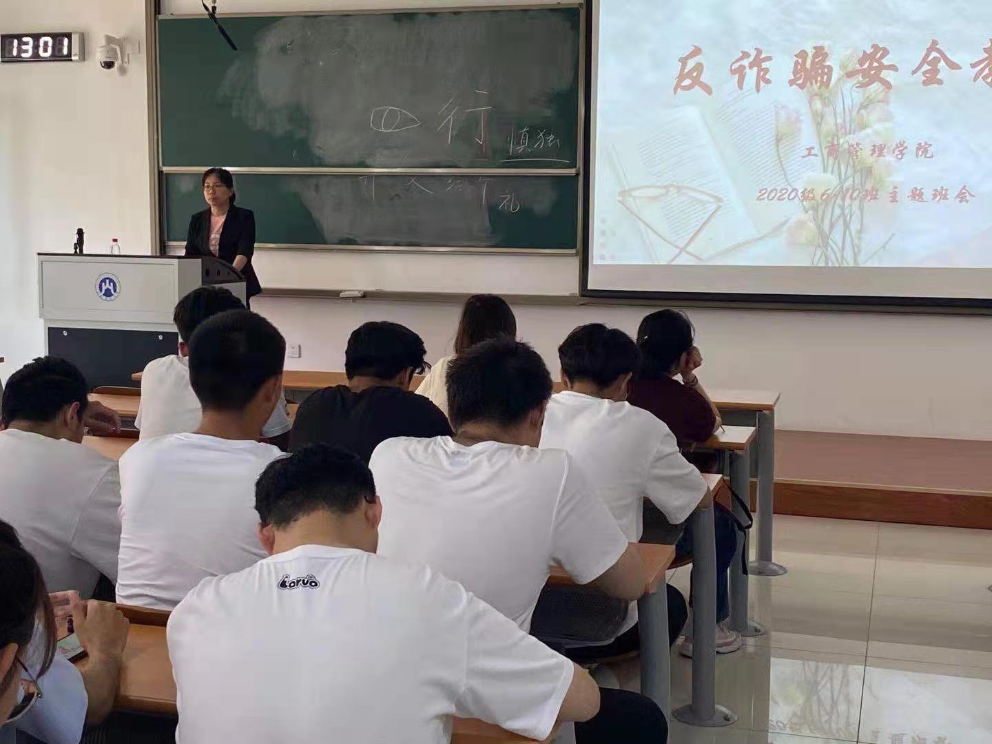 为了提高学生的安全防范意识,杜绝校园诈骗事件的发生,5月17-26日,工商管理学院组织各班全面召开防范电信网络诈骗暨安全教育主题班会。
