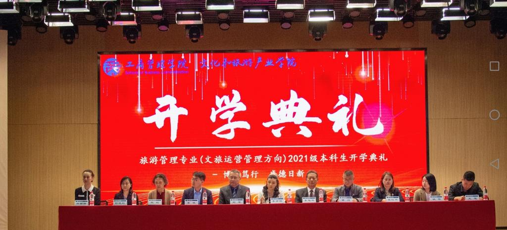 10月10日上午,文化和旅游产业学院2021级旅游管理专业(文旅运营管理方向)本科生开学典礼在圣井校区大学生文化活动中心举行。奥雅设计有限公司总裁、联合创始人,山东财经大学文化和旅游产业学院院长李方悦一行四人,工商管理学院党委书记李旭刚,工商管理学院院长、文化和旅游产业学院院长刘军,党委副书记张红燕、彭艳红,副院长赵红、王旭出席典礼。典礼由副院长邢楠楠主持,文化和旅游系全体教师以及2021级旅游管理专业(文旅运营管理方向)全体本科生参加典礼。