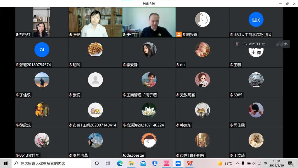5月19日下午,工商管理学院特邀山东省鲁盐集团有限公司运维部副部长张璐为市场营销专业学生开展以“营销人生:开启荣耀王者之路”为主题的线上讲座,学院党委书记赵世民,政府绩效评价研究中心副主任、市场营销系教授于仁竹,与各年级市场营销系学生一同聆听此次讲座。学院党委副书记彭艳红主持。