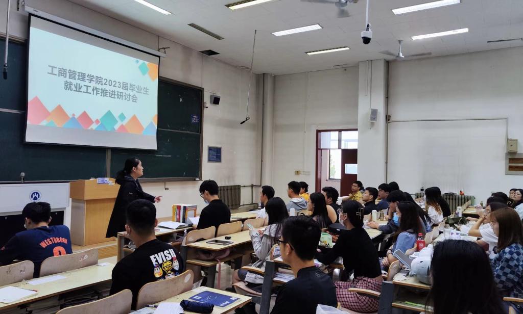 为全面了解毕业生状况,做好毕业生就业服务工作,9月15日,工商管理学院在逸夫楼302召开2023届毕业生就业工作推进研讨会。学院党委副书记侯昭瑾,毕业班辅导员范进进、郭丽娟、赵萱及各班学生代表参加了研讨会。