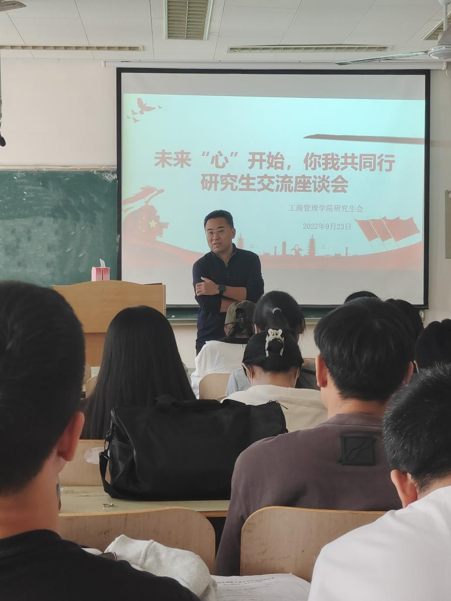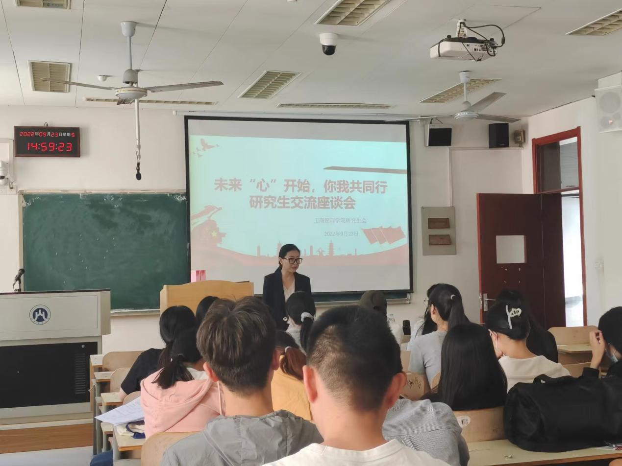 9月23日,工商管理学院研究生在燕山校区逸夫楼205开展主题为“未来‘心’开始,你我共同行”的座谈交流会。学院党委书记赵世民、党委副书记彭艳红及研学会全体成员参加了本次座谈。