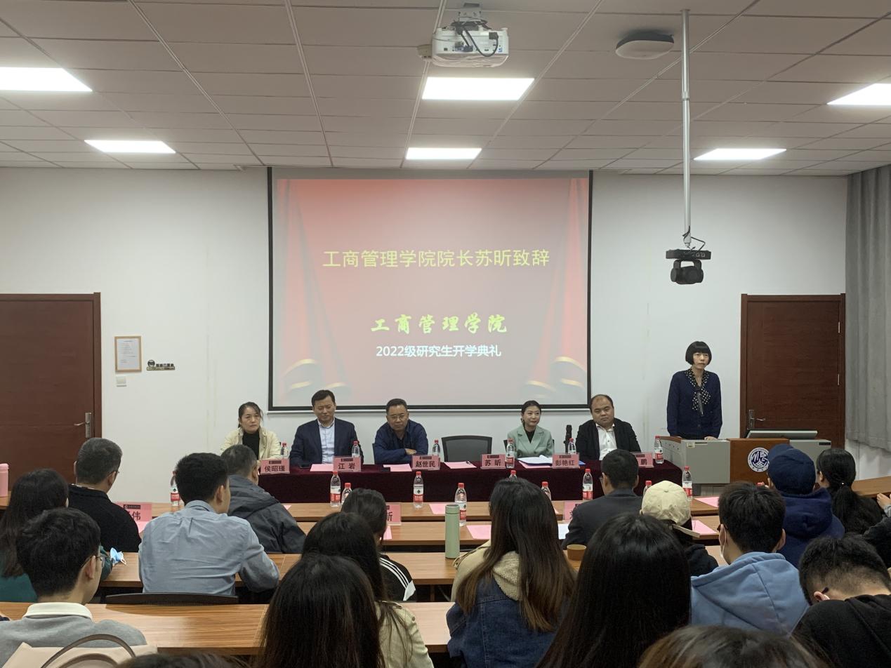 10月13日下午,工商管理学院2022级研究生开学典礼在学景酒店201报告厅隆重举行。学院党委书记赵世民、院长苏昕、人才发展中心主任兼副院长江岩、党委副书记彭艳红、侯昭瑾、副院长徐鹏及各系教师代表出席典礼。典礼由彭艳红主持,2022级全体研究生参加。