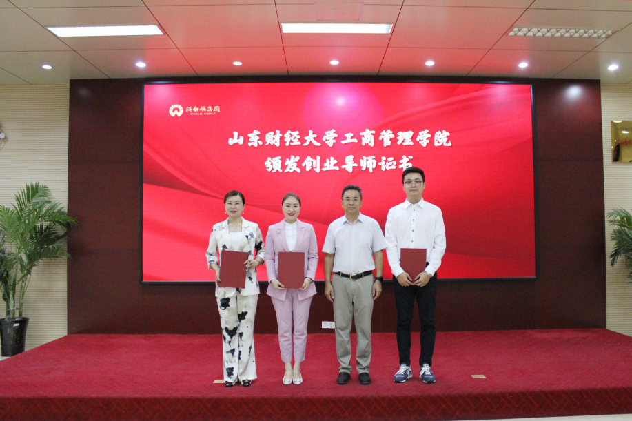 张红霞和林擘共同为“校企协同育人基地”揭牌。林擘为工商管理学院教师代表颁发了专家顾问聘书,工商管理学院院长苏昕和沃尔德集团总裁商雪梅共同签署了校企合作协议书,工商管理学院党委书记赵世民为企业代表颁发了山东财经大学工商管理学院创业导师聘书。