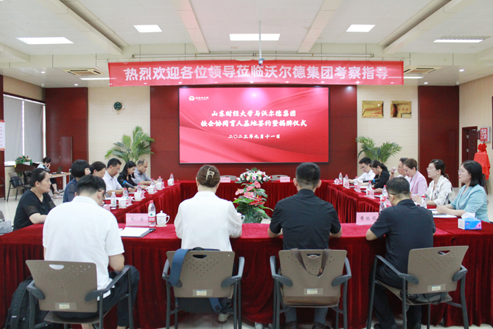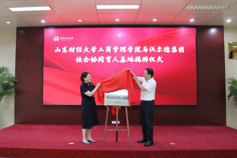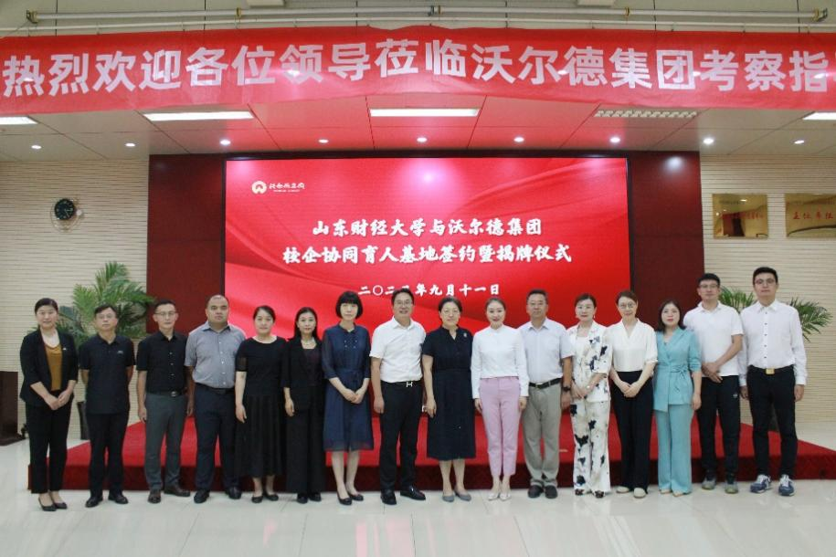 9月11日,山东财经大学与沃尔德集团有限公司校企协同育人基地签约暨揭牌仪式在沃尔德集团顺利举行。副校长张红霞、沃尔德集团董事长林擘、工商管理学院党委书记赵世民、院长苏昕以及教师和企业代表出席仪式,本次活动由沃尔德集团总裁商雪梅主持。
