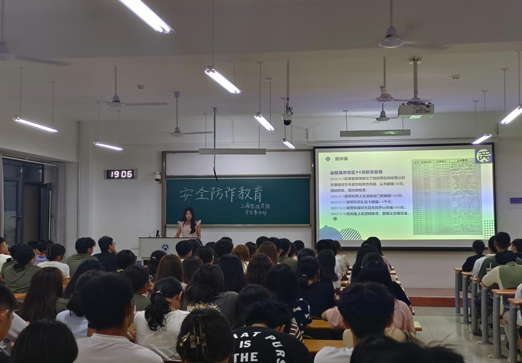 9月9日,我院组织2023级新生进行安全防诈教育。学院安全事务部结合安全防诈知识和典型案例,通过PPT讲解和视频播放的形式,向新生展开了一场鲜活的入学安全教育。