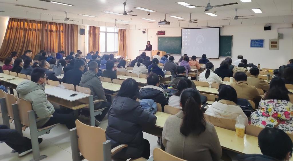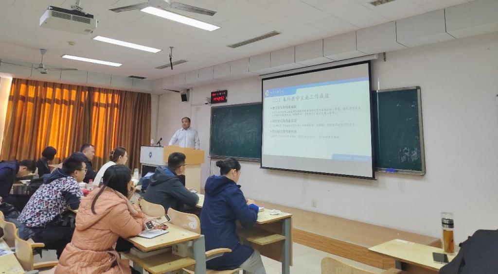 副院长徐鹏从本科教学工作举措及成效、本科教育教学审核评估工作进展与迎评安排、科研工作举措及成效以及2024年国家级课题申报论证安排四个方面介绍了学院相关工作的进展与下一步的具体安排。徐鹏对学院本科教育教学审核评估的前期准备工作进行了总结,强调各位教职工一定要充分认识和理解本科教育教学审核评估工作的重要意义与内涵,准确把握当前阶段的主要任务,齐心协力做好迎评工作。