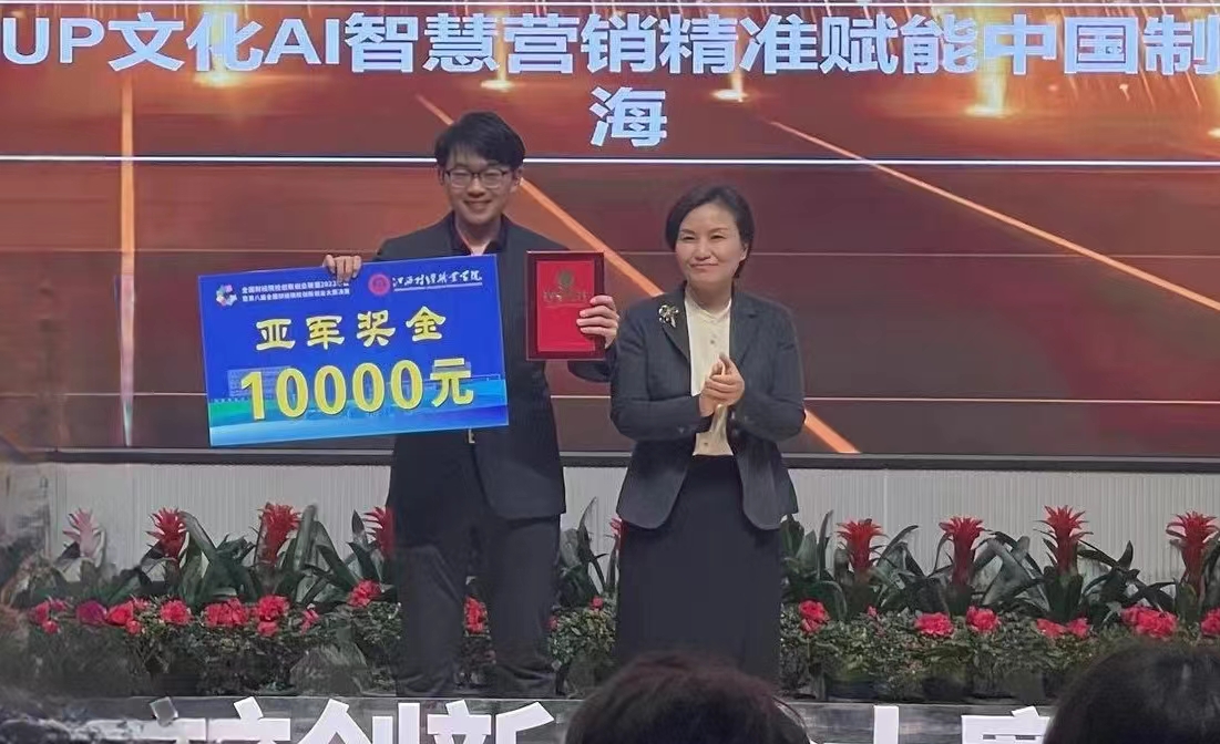 本次大赛分为小组赛和冠亚季军争夺赛,小组赛评审包含项目展示和现场答辩两个环节。在创业赛道决赛中,《UPUP文化——AI智慧营销精准赋能中国制造出海》项目以小组第一名的优异成绩获得一等奖并入围冠亚季军争夺赛,最终获得亚军。