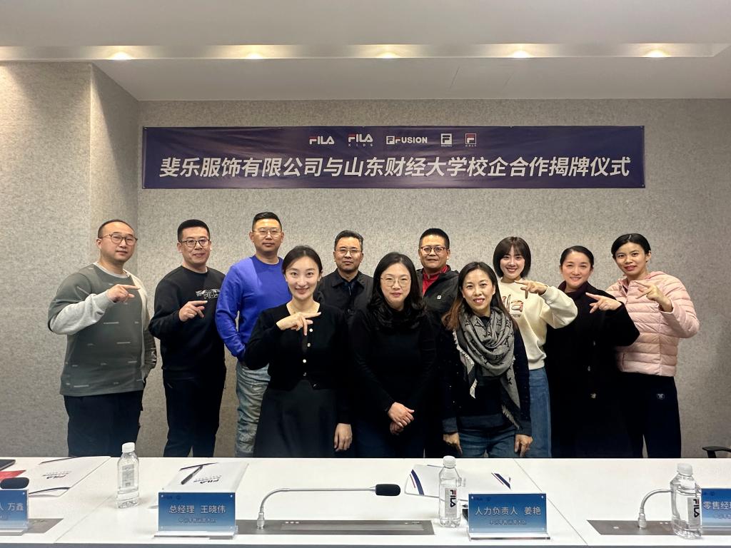 12月13日下午,我院与斐乐服饰有限公司社会实践基地揭牌仪式在济南斐乐公司会议室举行。学院党委书记赵世民、党委副书记侯昭瑾及辅导员代表参加,斐乐中区零售运营大区总经理王晓伟、人力负责人姜艳、办事处负责人万鑫、零售经理潘刚、石鹏及企业代表出席仪式。