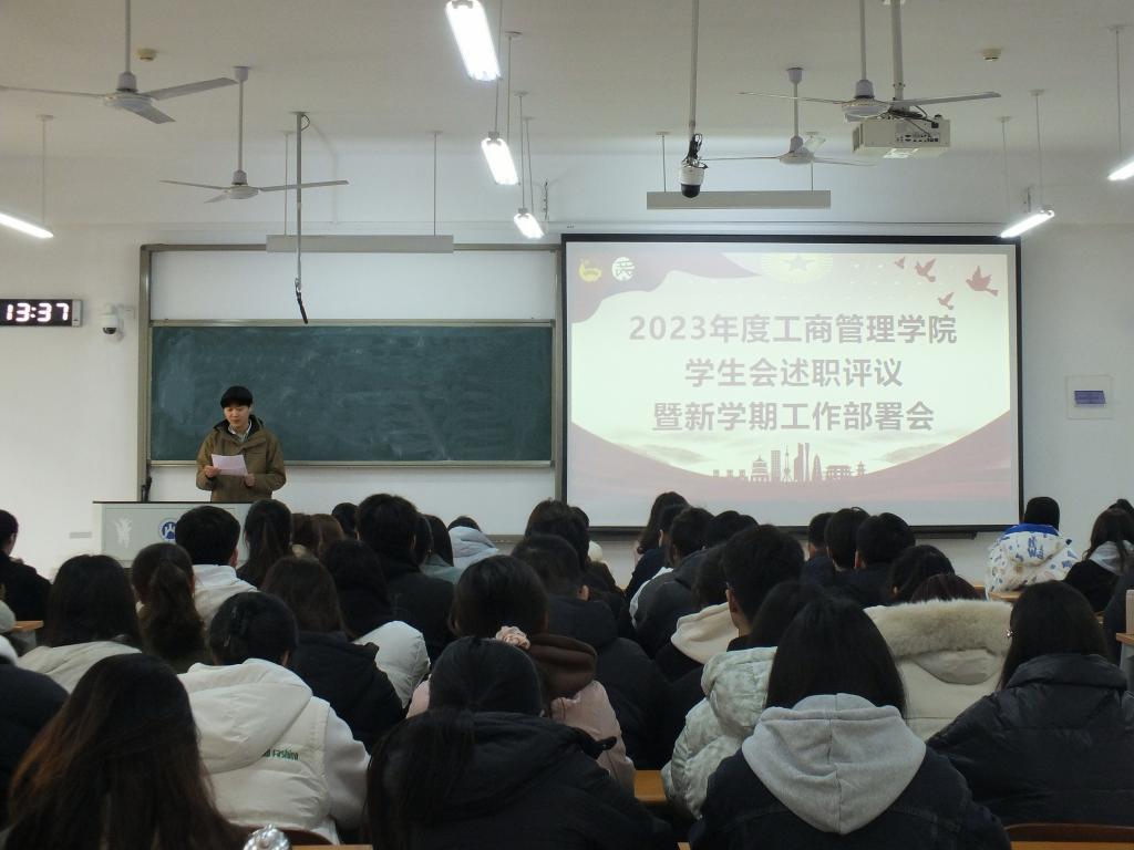 知不足而奋进,望远山而力行。为进一步加强学生组织建设,深化学生工作能力,工商管理学院于3月7日在圣井校区召开2023年度学生会述职评议暨新学期工作部署会。学院党委副书记侯昭瑾、团委老师以及学生会各部门成员参加本次会议。