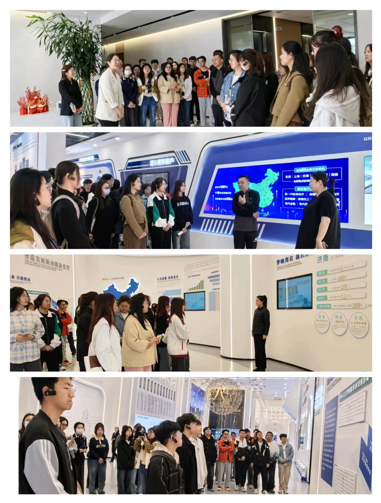 在商务服务区,师生们参访了华杰人力资源集团和上海外服(山东)人力资源服务有限公司。华杰人力资源集团是一家快速成长的山东本土人力资源服务企业,企业创始人班雪向大家介绍了自己的创业经历,分享了创业经验和感想,指出人力资源管理工作和人力资源服务行业具有良好的从业前景,鼓励同学们珍惜学习机会、努力学好专业技能。上海外服是行业领先的全国性人力资源服务企业,公司招聘服务部门负责人石旭岑重点向同学们介绍了上海外服各类人力资源服务业务、数智技术赋能情况以及服务模式创新优势,并带领大家参观了公司办公场所。
