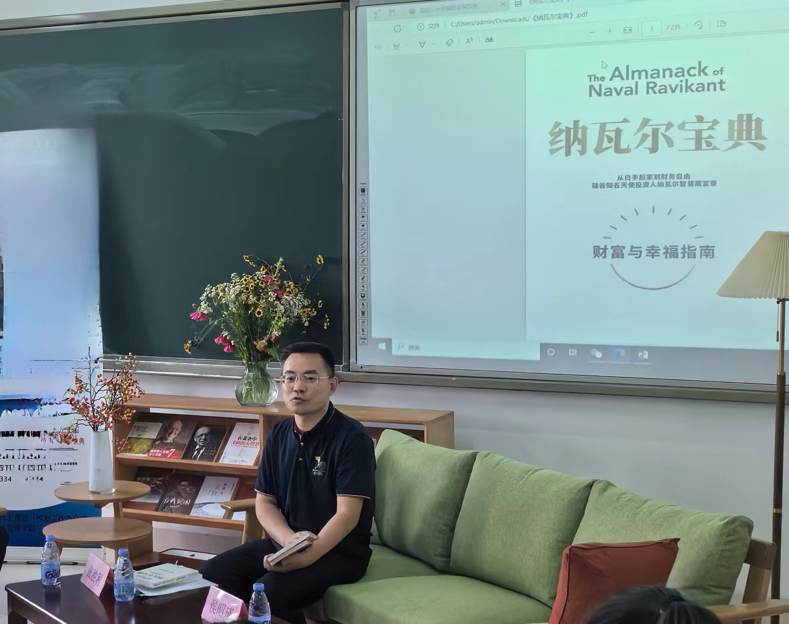 张胜利结合经典书籍《纳瓦尔宝典》,梳理了书中各章节的内容,结合自己的学习、工作经历分享了读书感悟。他表示读书对于个人成长有着重要的作用,勉励同学们要珍惜大学的好时光,多读书、读好书,在书籍中积累知识、拓宽视野、增长智慧、学会思考,通过读书形成良好的思维能力和认知能力,全面提高综合素质;同时他提醒同学们要主动关心关注社会动态和市场需求,为将来的就业做好充分的准备,并现场为同学们赠送了书籍。