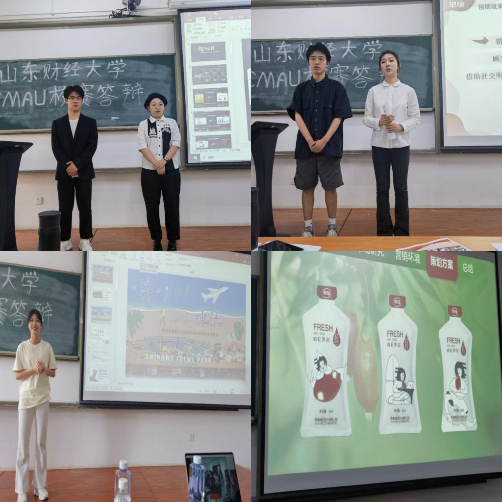 近日,第三届CMAU全国大学生市场研究与商业策划大赛山东财经大学校内选拔赛在山东财经大学圣井校区成功举办。我院教师张晴、王丽丽、侯昭瑾担任评委,市场营销系主任刘侠做赛前致辞,大赛由杨芳主持。