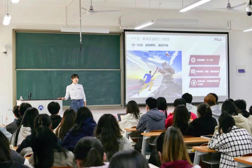 为增强学生的生涯规划与职业发展意识,提升自我认知水平与职业探索能力,明确未来奋斗目标,激发学习原动力,3月21日,我院于圣井校区8310举办“冀未来,明方向”系列就业指导讲座第二讲“生涯筑梦,职引未来”,特邀斐乐鲁豫区人力资源部负责人姜艳为学生们作职业生涯指导,我院2021级、2022级在校生到场聆听,讲座由辅导员李君主持。