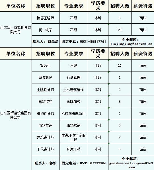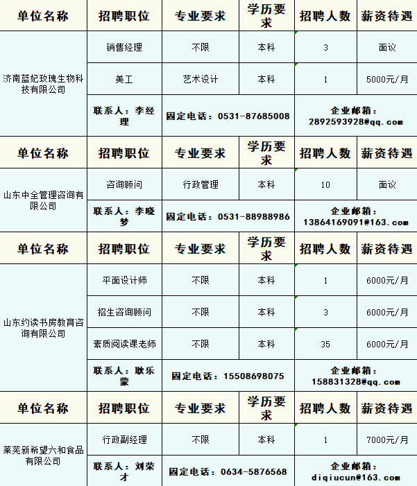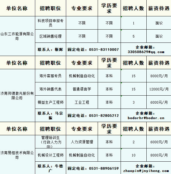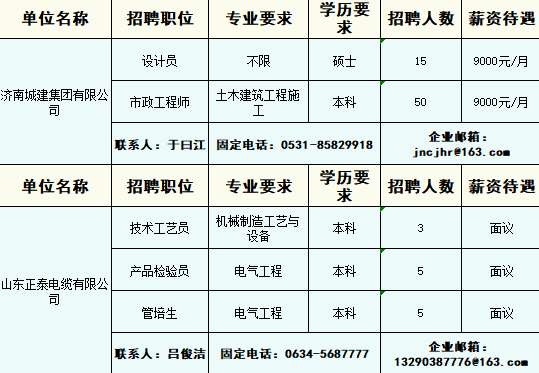 企业最新招聘信息
