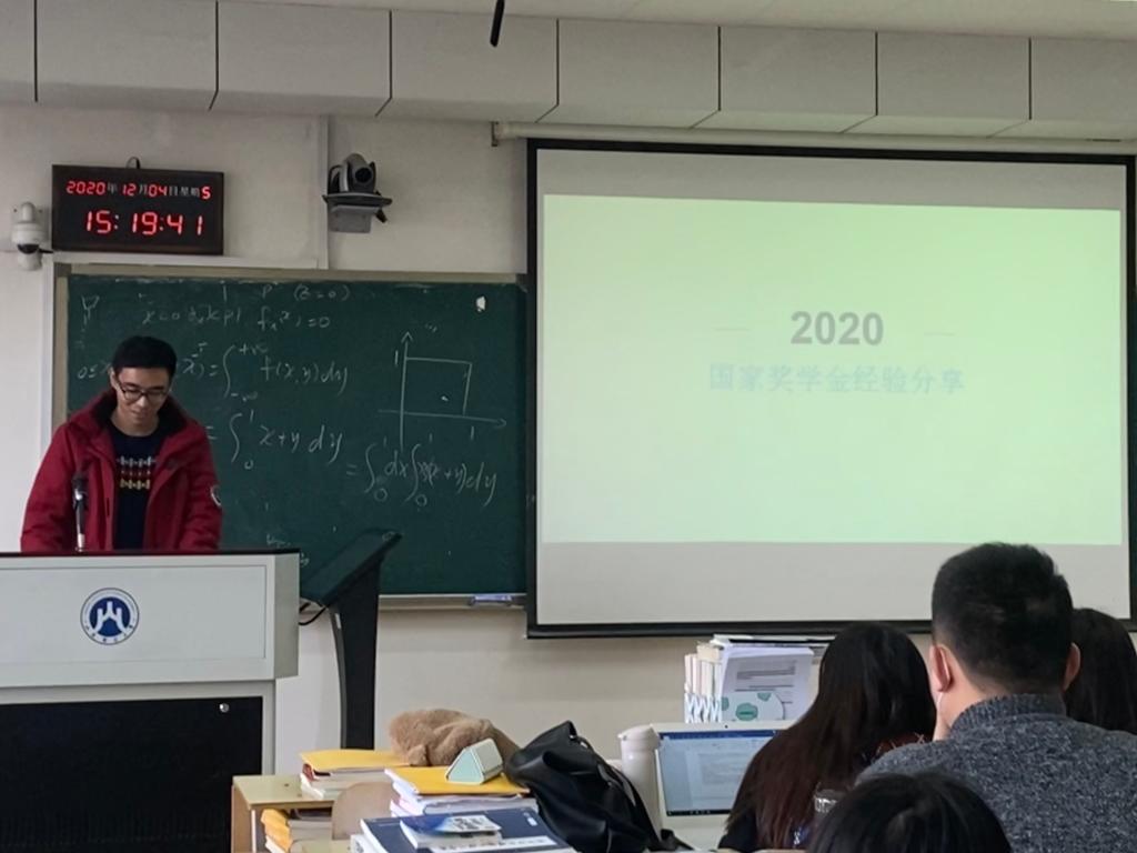 张恒首先介绍了国家奖学金的评选标准和学校政策,并结合自己的获奖经历向同学们提出了做好未来规划、谨慎决定研究方向和在学习氛围浓厚的地方开展科研活动的建议。
