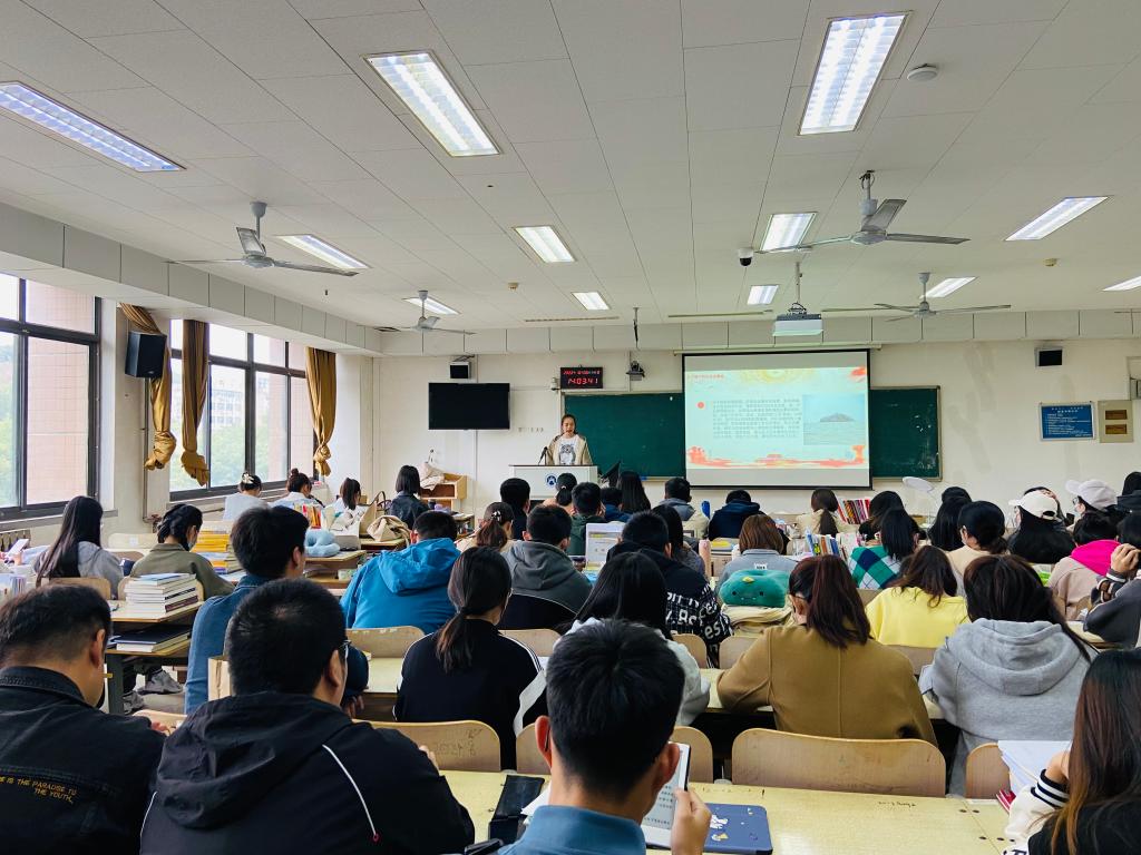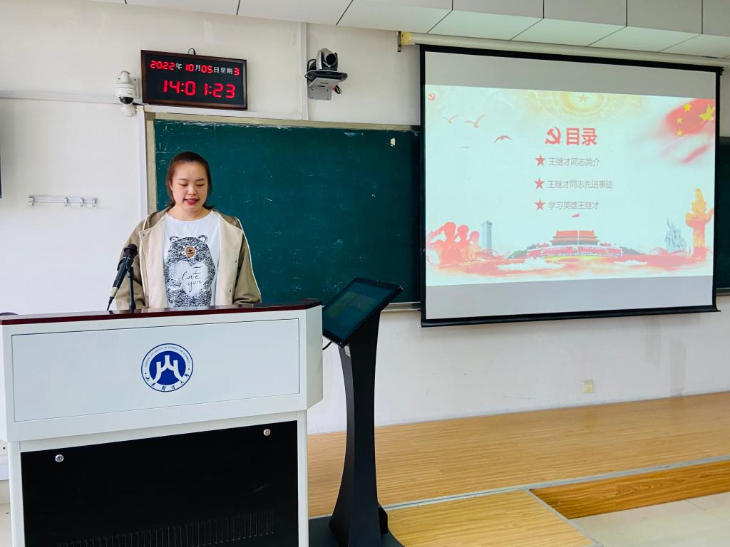 首先,研学会李凌琪同学在讲台上为大家介绍了王继才同志的先进事迹。王继才的一生是坚守孤岛与艰苦奋斗的一生,是爱岗敬业与爱国奉献的一生。在这座无水、无电、无居民的岛上,我们看到了王继才、王仕华夫妇在每天太阳一跃出水面时庄严地升起国旗,担负起观察监视海上和空中情况、防止内潜外逃、维护治安和抢救海上遇险船只等职责。他们夫妻二人在平凡岗位上爱国奉献、尽职尽责、艰苦奋斗,映射着平凡中铸就伟大的理想追求。
