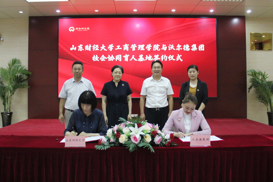 9月11日,山东财经大学与沃尔德集团有限公司校企协同育人基地签约暨揭牌仪式在沃尔德集团顺利举行。副校长张红霞、沃尔德集团董事长林擘、工商管理学院党委书记赵世民、院长苏昕以及教师和企业代表出席仪式,本次活动由沃尔德集团总裁商雪梅主持。