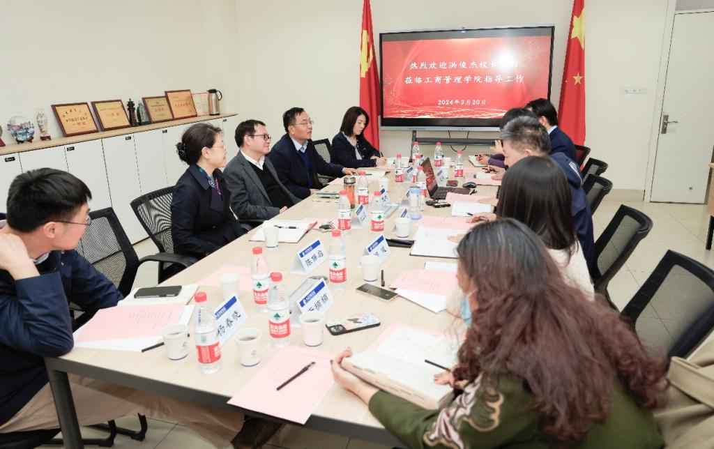 洪俊杰听取汇报后对学院的整体工作和成绩表示充分肯定,并对学院未来发展提出新的要求。他指出,工商管理学院是一个有历史、有传承的大院,学科专业和人才培养方面具有良好的基础,发展空间和潜力很大。洪俊杰强调,要以学科建设为抓手,围绕学科发展统筹推进学院各项工作;有组织地引进和培养人才,并以此为学院各项工作提供强劲动力;继续夯实有组织科研工作,营造浓郁学术氛围,提升学院整体科研水平;立足学院自身特色,充分发挥学院在服务产业和企业高质量发展等方面的作用;采取多种举措,进一步提升管理工作效能;积极与有关单位协同推进国际认证工作,以认证助力国际交流与合作。最后,洪俊杰强调,工商管理学院要在现有学科优势和工作成绩的基础上,进一步凝练学科和学院发展特色,为学校新时代高水平财经特色名校建设贡献力量。
