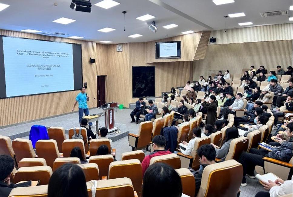 11月24日,工商大讲堂第126期暨“洞见·商道”校友讲坛第11期顺利举行。本次活动特邀西安交通大学管理学院教授、博士生导师胡楠作题为“探索大语言模型对管理与经济研究前沿重塑”的学术报告。学院院长助理陈庆江主持活动。