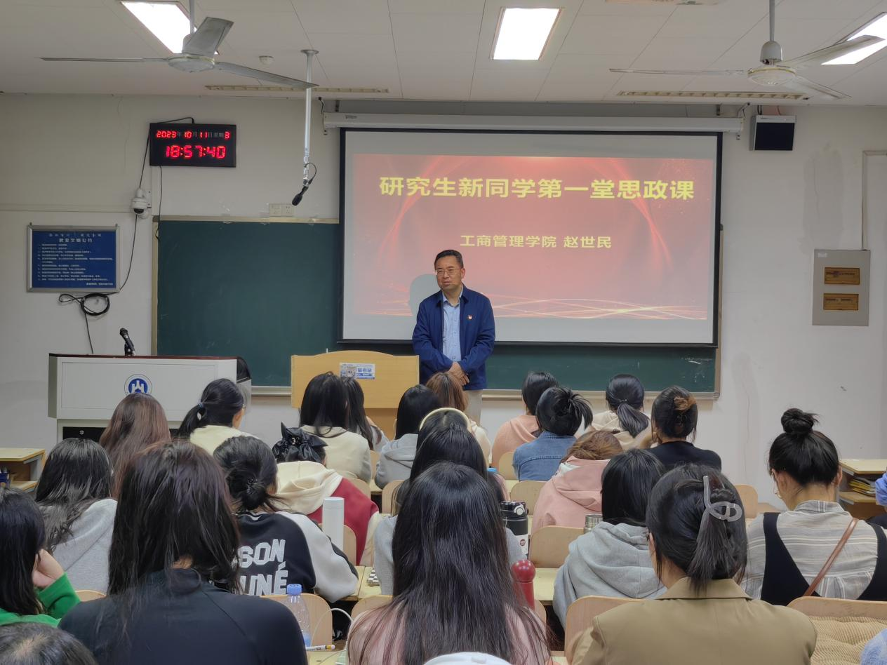 为深入学习贯彻习近平新时代中国特色社会主义思想,落实立德树人根本任务,把思想政治教育贯穿人才培养全过程。10月11日晚,我院党委书记赵世民在逸夫楼206教室为2023级研究生新同学开讲了第一堂思政课。