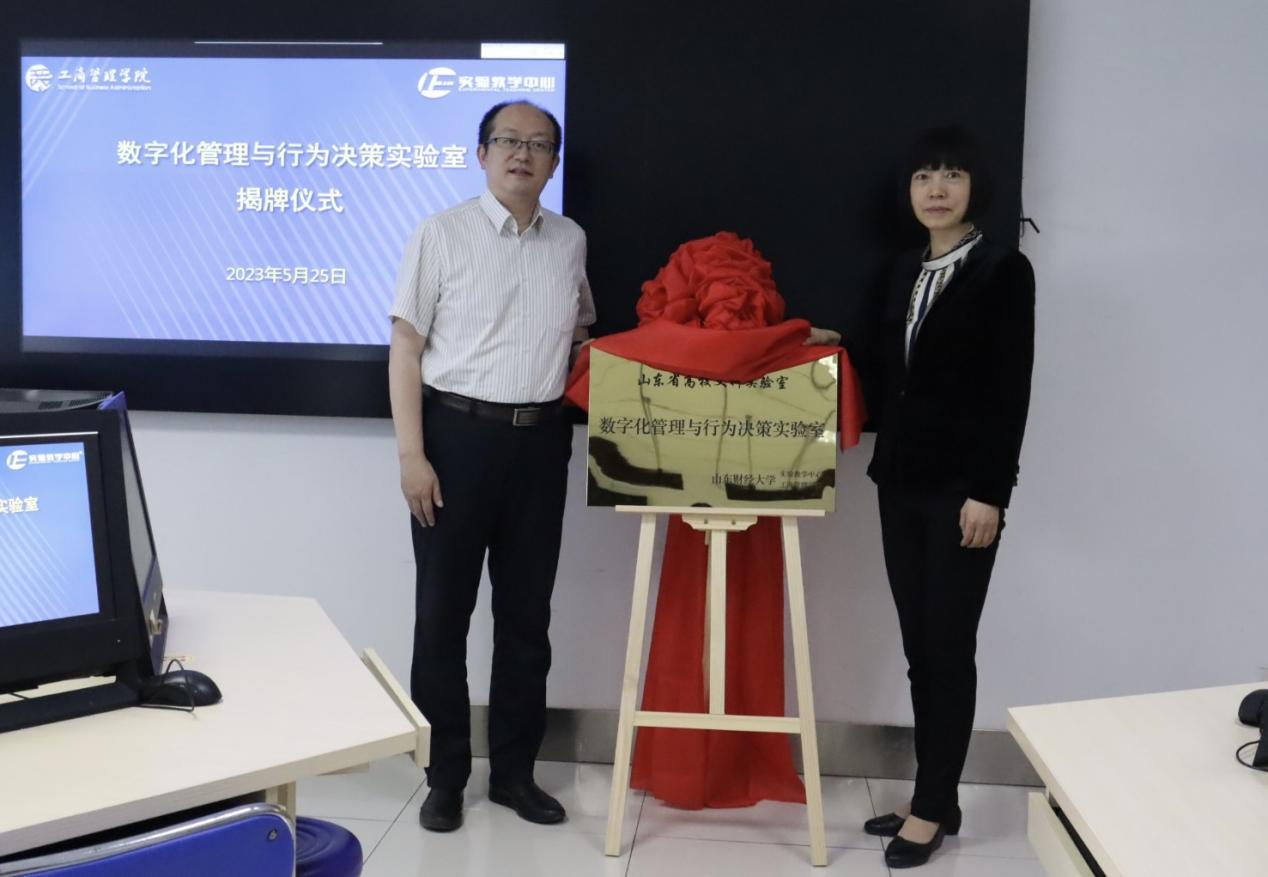 5月25日下午,“数字化管理与行为决策实验室”揭牌仪式在燕山校区3701举行。山东财经大学副校长陶虎、山东大学特聘教授李建标、工商管理学院和实验教学中心主要负责人以及师生代表出席揭牌仪式。