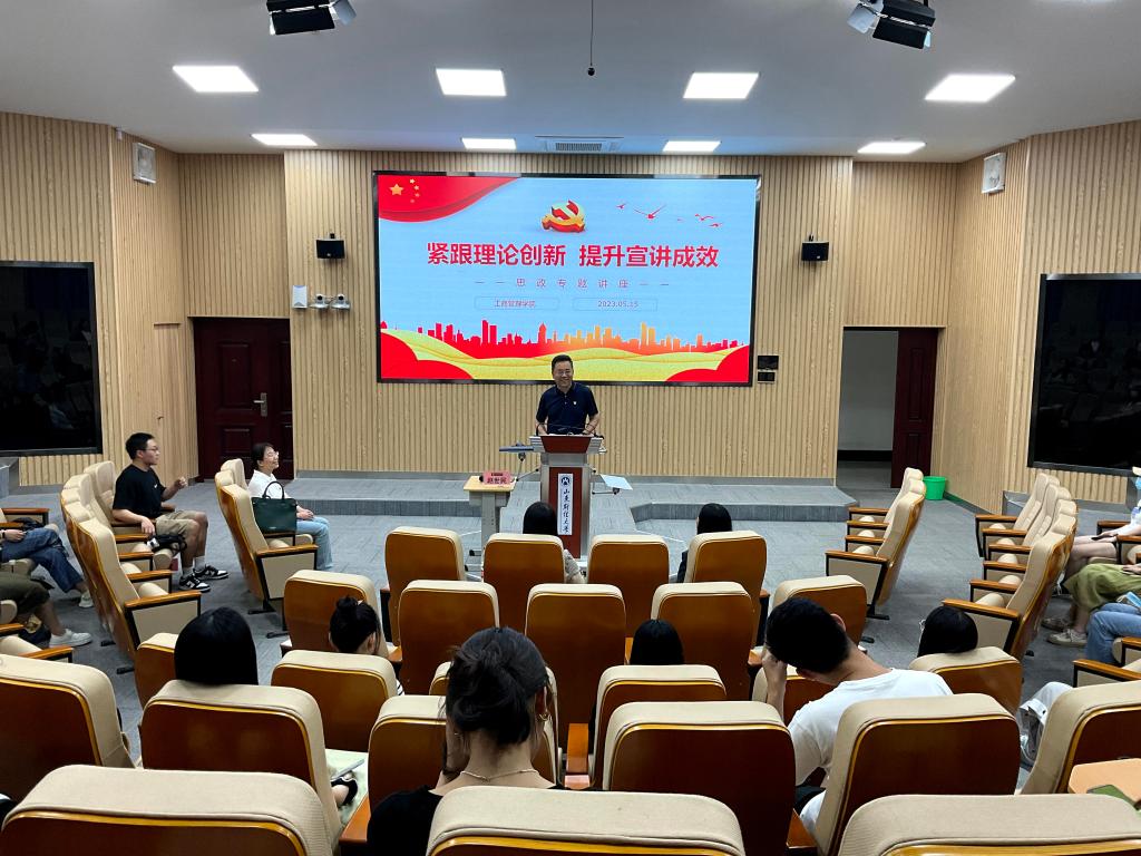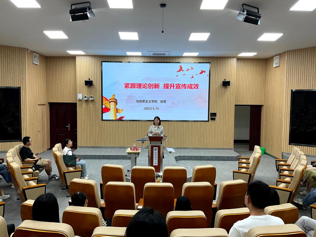 5月15日下午,工商管理学院在逸夫楼103报告厅开展了以“紧跟理论创新,提升宣讲成效”为主题的第十五期理论学习周周见活动。本次活动特邀马克思主义学院徐莹院长主讲,学院党委书记赵世民、党委副书记彭艳红和辅导员郭丽娟以及工商管理学院全体研究生参加。