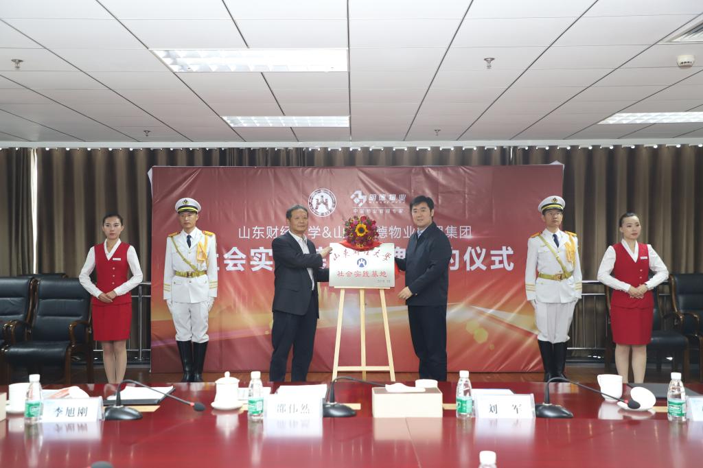 10月31日上午,我院与山东明德物业管理集团社会实践教学基地签约暨授牌仪式在明德集团党建会议室举行。山东明德物业管理集团董事执行总裁王正坤、副总裁邹心忠、副总裁金艺、人力资源中心总经理刘丹丹、山东财经大学合作发展处副处长邵伟然、工商管理学院党委书记李旭刚、院长刘军、党委副书记张红燕及企业相关人员、师生代表参加了本次签约暨授牌仪式。