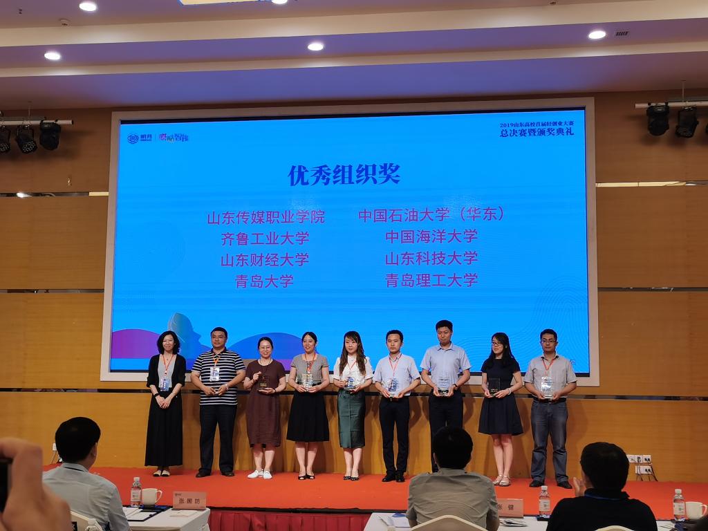 7月16日,由青岛明月海藻集团有限公司和青岛西海岸新区品牌发展中心联合发起的“定制青春·创享未来”2019山东高校首届轻创业大赛总决赛暨颁奖典礼圆满举行,山东财经大学工商管理学院荣获优秀组织奖。我院党委副书记张红燕和就业办负责人刘薇参加了颁奖典礼。
