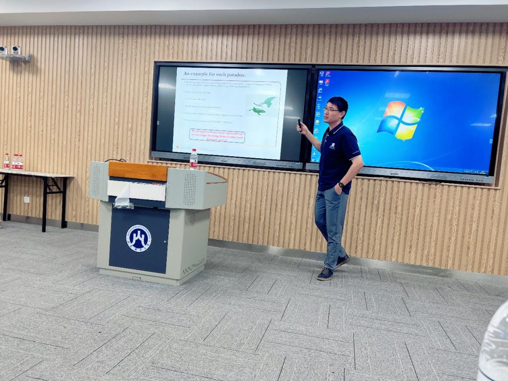 7月12日下午,工商大讲堂第131期暨“洞见·商道”校友讲坛第16期在燕山校区逸夫楼104教室顺利举行。本次讲坛特邀香港中文大学(深圳)副教授与校长学者、2024年亚洲管理学双年会战略学部主席姜翰作题为“Chewing off your own arm to get away: Upper-echelon social capital and declining firms’desperate moves”的学术报告。工商管理学院院长苏昕、学院相关教师和研究生参加了此次讲座,讲座由工商管理学院副院长徐鹏主持。