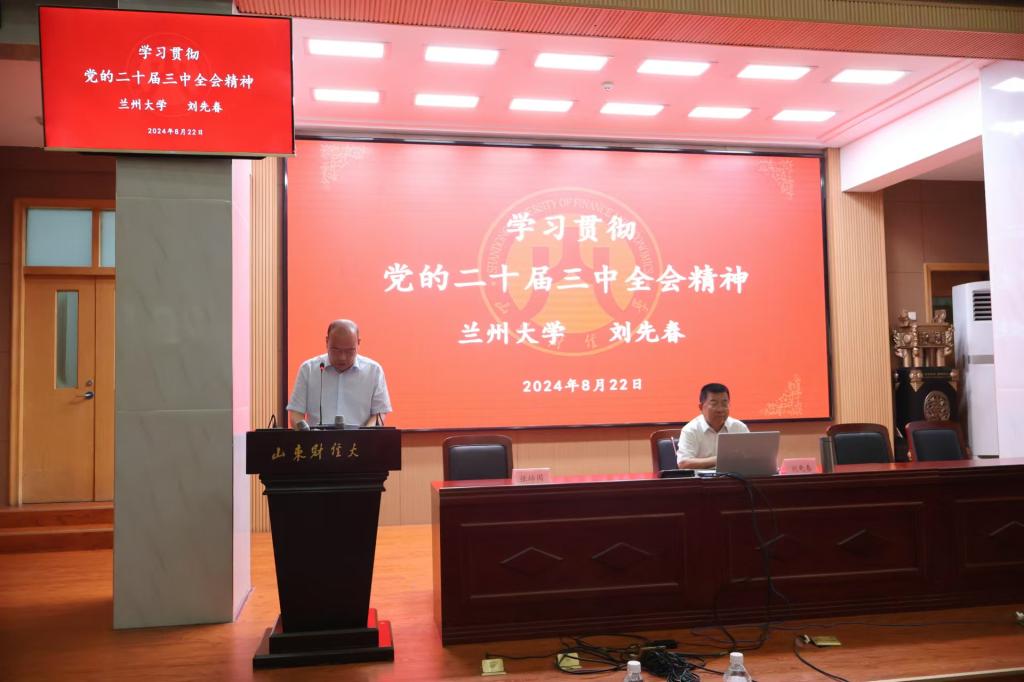 8月22日下午,兰州大学马克思主义学院教授刘先春来我校宣讲党的二十届三中全会精神。我院党委书记赵世民、副书记彭艳红、侯昭瑾及教师和学生党支部书记参加宣讲报告会。