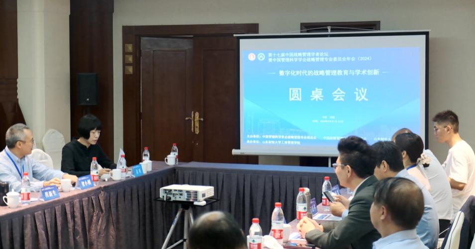 圆桌会议由山东财经大学工商管理学院苏昕主持,南开大学程新生教授、上海财经大学贺小刚教授、东北财经大学韵江教授、北京邮电大学宁连举教授、大连理工大学林海芬教授、山东福瑞达生物股份有限公司白天明副总经理围绕“数字化时代的战略管理教育与学术创新”进行了观点分享,并围绕学科建设、研究生教育、成果转化等方面展开深入探讨。