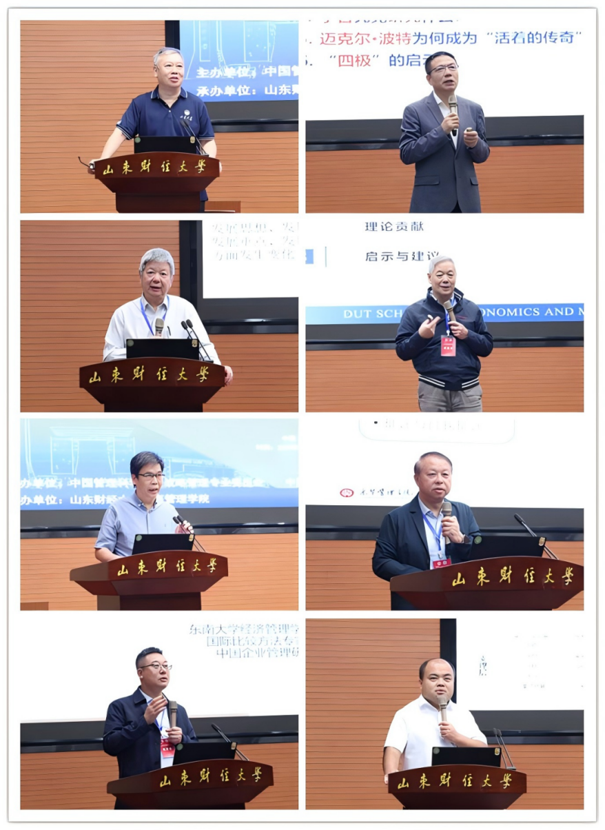 主旨报告环节由山东大学陈志军教授和中国社会科学院周文斌研究员主持。上海财经大学徐飞教授作题为《新质生产力与企业高质量发展》的报告,从生产资料所有制、劳动者地位及其相互关系、劳动产品分配方式三个维度探讨了新型生产关系的现实构建。中国社会科学院黄速建研究员作题为《新质生产力的管理学本质》的报告,深入探讨了新质生产力的管理学内涵以及如何构建新质生产力管理学发展框架。大连理工大学苏敬勤教授作题为《关系(GUANXI)是如何影响数字平台治理的?》的报告,分析了关系在数字平台治理中的重要性,指出在平台治理本土化研究中要充分考虑中国独特的关系情境。北京大学武亚军副教授作题为《从华为业务领先模型看数字化时代中国企业战略领导力发展》的报告,结合华为业务领先模型的研发历程及实际应用,揭示了中国本土管理研究的繁荣发展与知识创新路径。东南大学杜运周教授作题为《数智时代组态视角下的竞争优势:不可替代性与等效性悖论》的报告,提出了等效的不可替代性悖论,强调要注重战略领域方法论的发展以解释复杂的战略现象及其机制。山东财经大学徐鹏教授作题为《人工智能技术赋能企业管理的伦理关切》的报告,从生产管理、产品管理和营销管理三个角度分析了人工智能技术赋能企业管理的伦理困境、底层逻辑与治理路径。