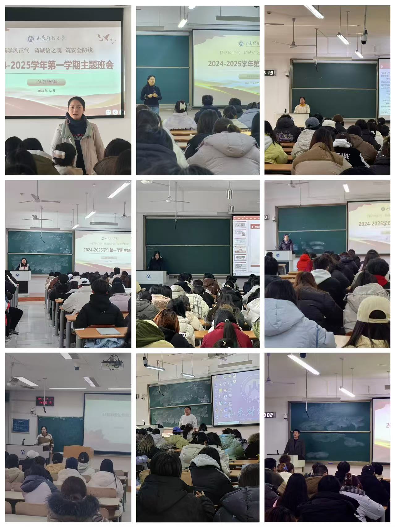 为进一步加强学生的诚信意识、纪律观念和安全防范能力,做好期末相关工作,近日,工商管理学院全体辅导员集体备课,针对所带班级实际情况,结合学风建设、诚信教育和安全教育等内容,召开了2024-2025学年第一学期主题班会。
