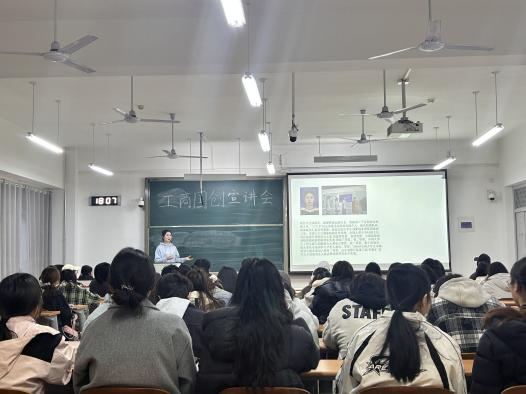 王晨曦为同学们分享了详细的创赛经验。她介绍了比赛项目包含立项、中期报告、季度报告以及结项等关键环节,让同学们对国创流程有了清晰认知。在国创选题方面,学姐建议同学们从自身实际出发,多角度考虑选择适合的选题。