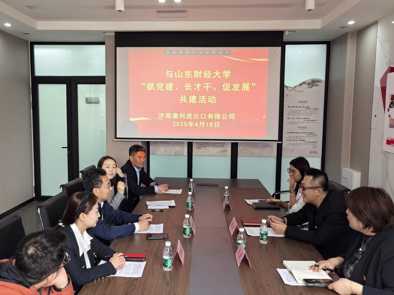 4月18日下午,山东财经大学工商管理学院、计算机与人工智能学院与济南产业发展投资集团有限公司(以下简称"济南产发集团")联合开展"抓党建、长才干、促发展"党建共建活动。活动由工商管理学院党委书记赵世民带队,工商管理学院党委副书记彭艳红、计算机与人工智能学院党委副书记吕海霞,工商管理学院市场营销系党支部和计算机与人工智能学院人工智能系党支部党员代表等参与。济南产发实业集团副总经理、第一联合党支部书记姜勋及相关业务负责人出席座谈。