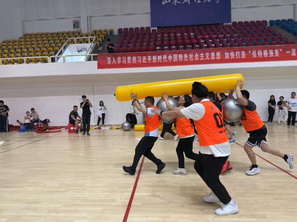 团体趣味项目更是将现场气氛推向高潮。队员们齐心协力,共同为荣誉而战。在比赛中,相互鼓励、密切配合,每一个动作都经过精心磨合,充分体现了团队的凝聚力和协作精神。尽管比赛竞争激烈,但老师们始终秉持着“友谊第一,比赛第二”的原则,在赛场上享受运动带来的快乐。