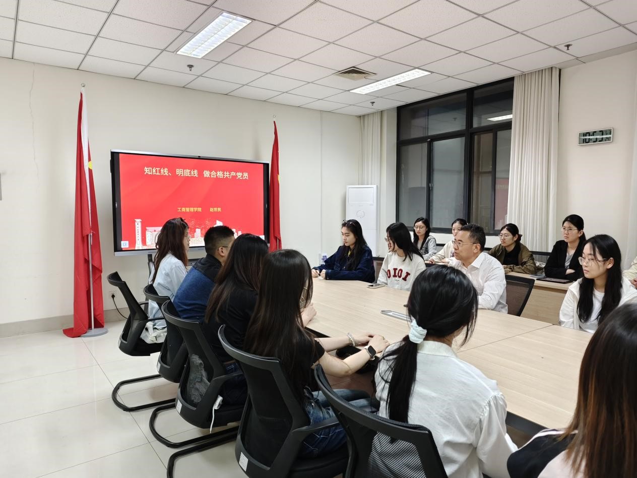 为深入贯彻全面从严治党要求,进一步强化党员纪律意识和规矩意识,筑牢思想防线,5月8日晚上,我院在逸夫楼207组织开展“知红线、明底线,做合格共产党员” 专题党课。学院党委书记赵世民主讲,研一研二全体党员参加。