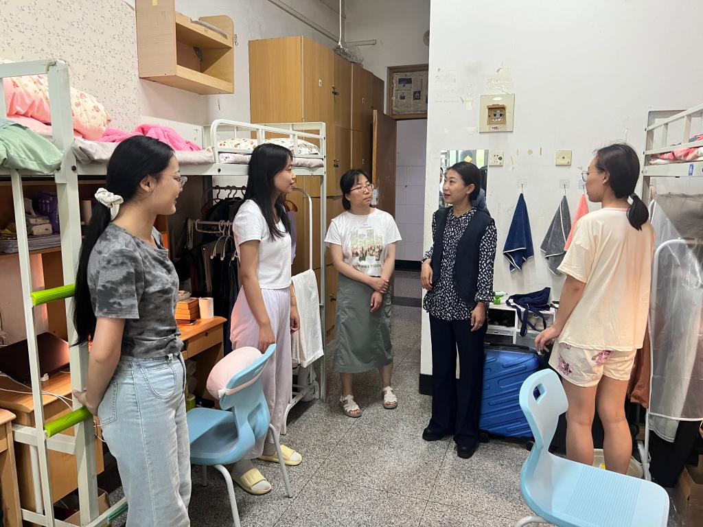 6月5日下午,工商管理学院党委书记赵世民、副书记彭艳红分别带领毕业班辅导员深入毕业生宿舍,面对面与毕业生进行谈心交流,深入了解毕业生就业动态,为同学们送去学院的关怀与祝福。