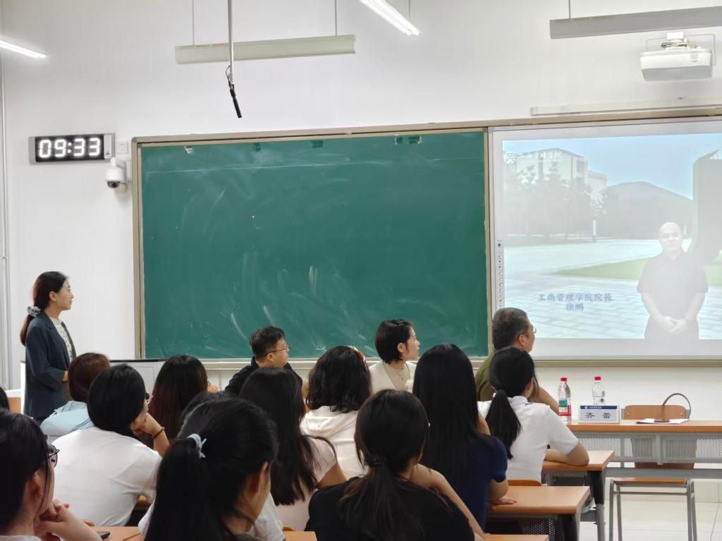 9月5日上午,我院在章丘校区8303教室开展2025级研究生专业教育。学院党委副书记彭艳红,院长助理于潇,工商管理系主任、教学发展中心主任费振国,文化和旅游系主任于伟及人力党支部副书记、科研发展中心主任齐蕾出席。活动由彭艳红主持,2025级全体研究生参加。