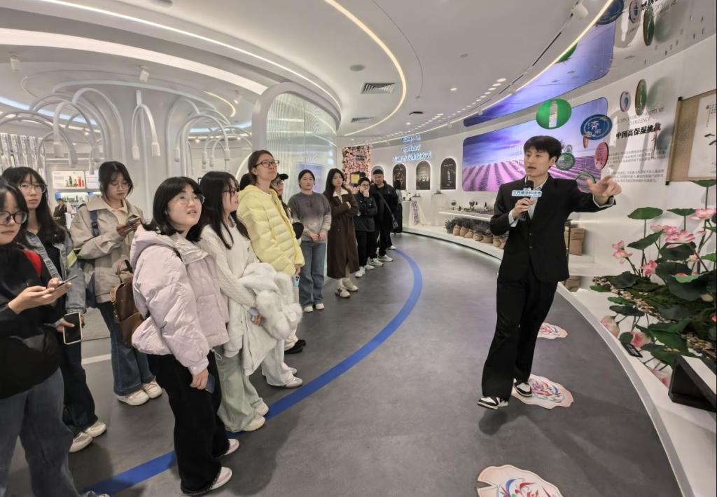 师生团队实地参观了福瑞达生物股份及世界美妆科技馆,深入了解了公司的发展历程、产品体系、智能化生产线以及科技创新成果。参观结束后,产业导师白天明作了题为“中国零售业态的变与不变”的专题报告。在互动交流环节,同学们围绕品牌定位、渠道策略、私域建设等专业问题,与企业老师进行了交流探讨,现场氛围热烈。